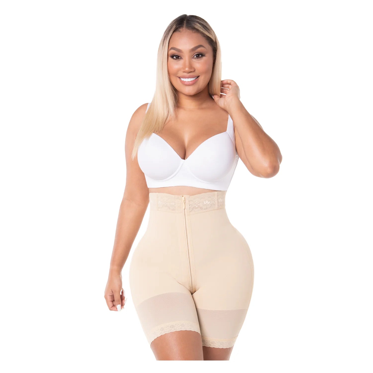 Nuestra faja short levanta glúteos realza tu figura al proporcionar compresión en abdomen, cintura y muslos, mientras eleva naturalmente los glúteos para un efecto visual más firme y redondeado.